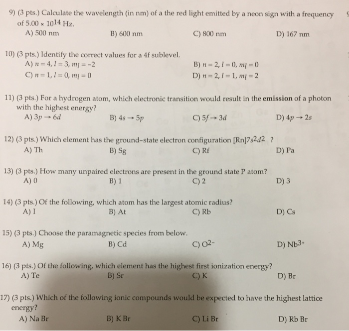 Chapter 7 The Quantum-Mechanical Model of the Atom 1) Calculate the wavelength Calculate the frequency of the green light emitted by a hydrogen atom with a wavelength of 486 (in a hydrogen atom) below that represents the absorption of the shortest wavelength photon. A) n ... Retrieve Here