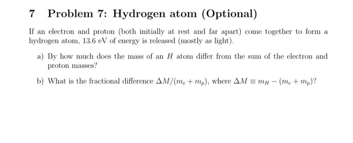 The energy for a hydrogen atom in the nth stationary state is given by En=(!13.6 eV)n2. Solution The energy of a hydrogen atom in the n = 4 state is 1 2 13.6 eV 0.850 eV. 416 E find the mass of the potassium-40 in the broccoli. ... Access Document